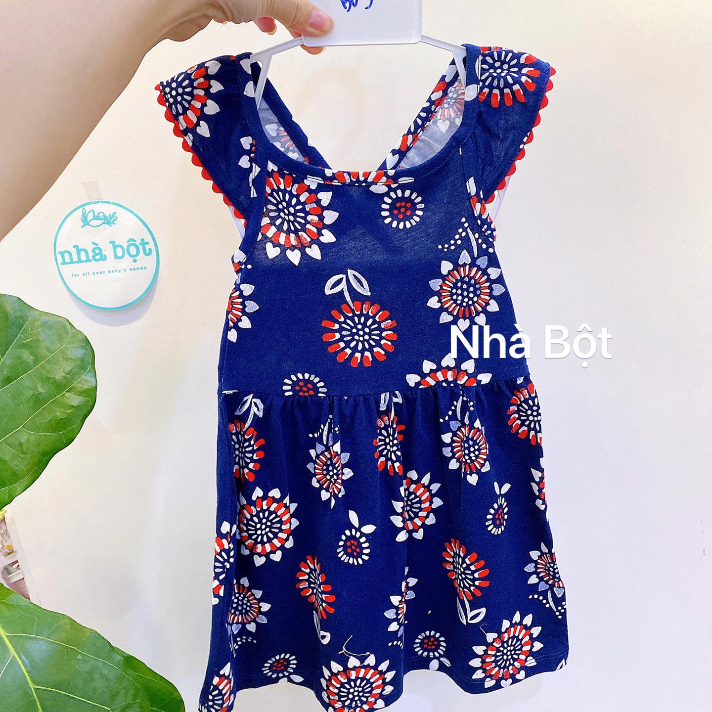 Đầm Carter bé gái 190222 xanh đậm họa tiết