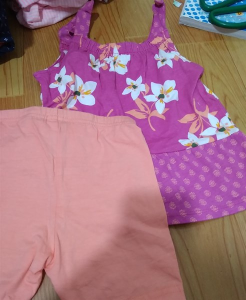 Set 2 Cater lửng bé gái 0309 tím hoa-cam trơn